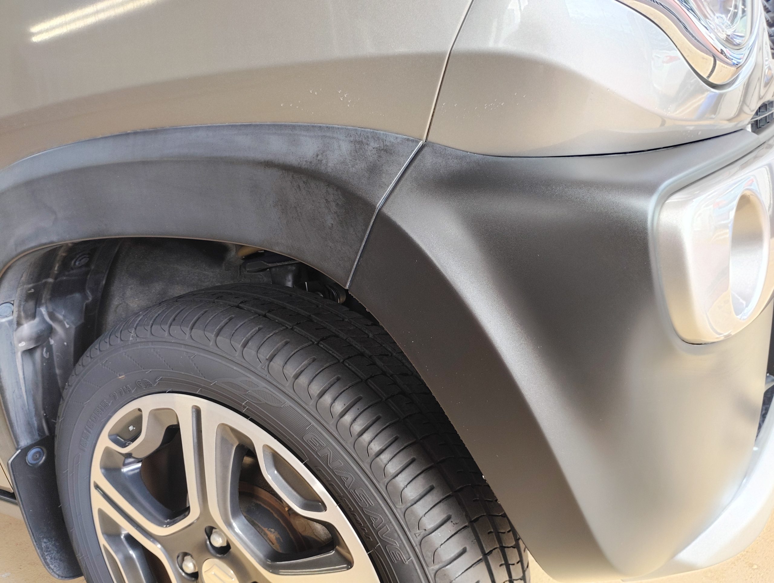 こんにちは、営業の由井です。 早速ですが、樹脂の部分が白っぽくなってきて嫌だな〜なんて思ってる方いませんか? 実は簡単に黒く出来ます! ※こちらは前の部分を施工してあります。 本当に手軽で格安で綺麗に出来ます。 お困りの方はスタッフにご相談下さい!