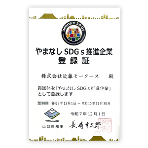 | 令和4年12月 | やまなしSDGs推進企業 登録 |