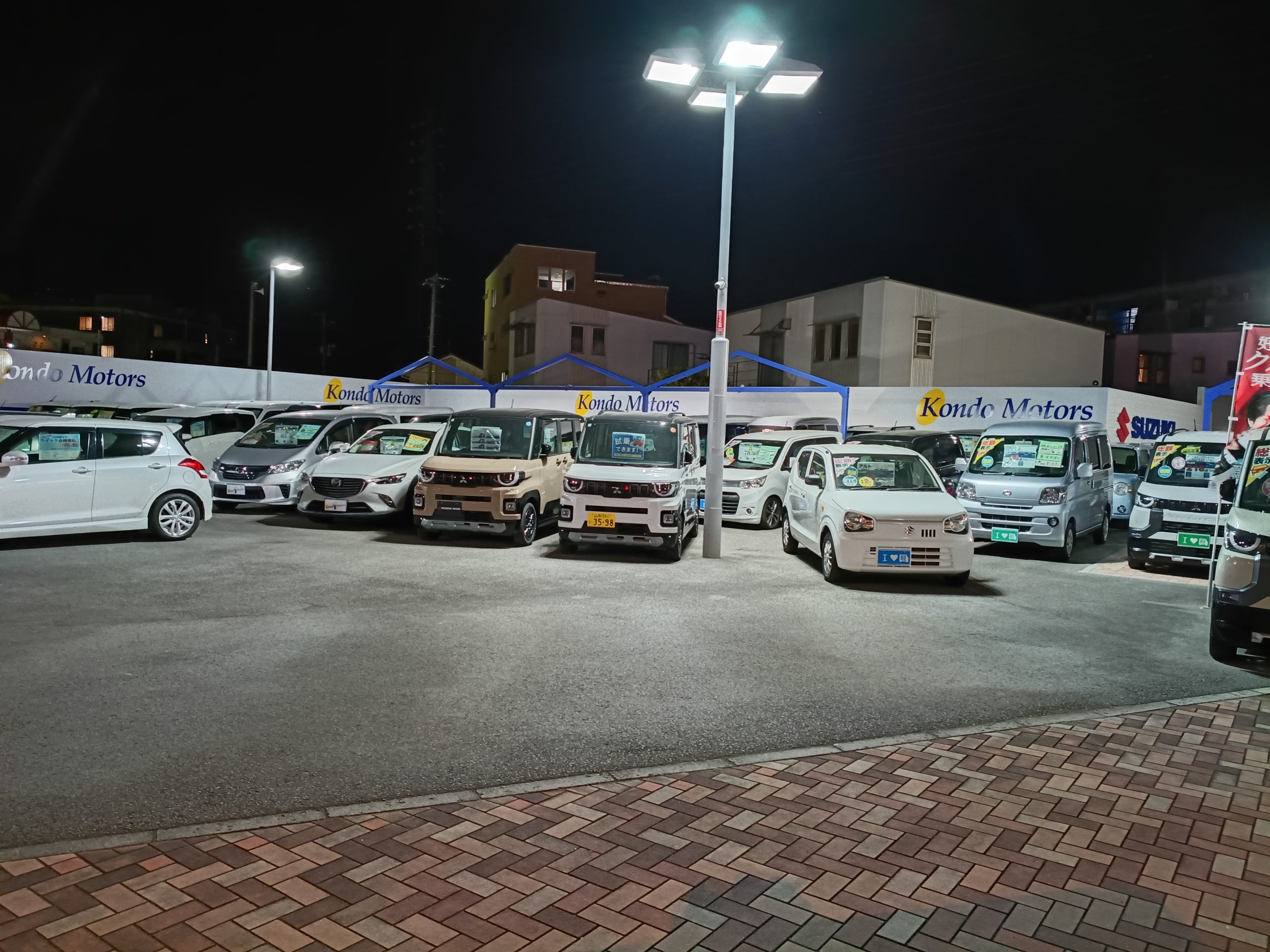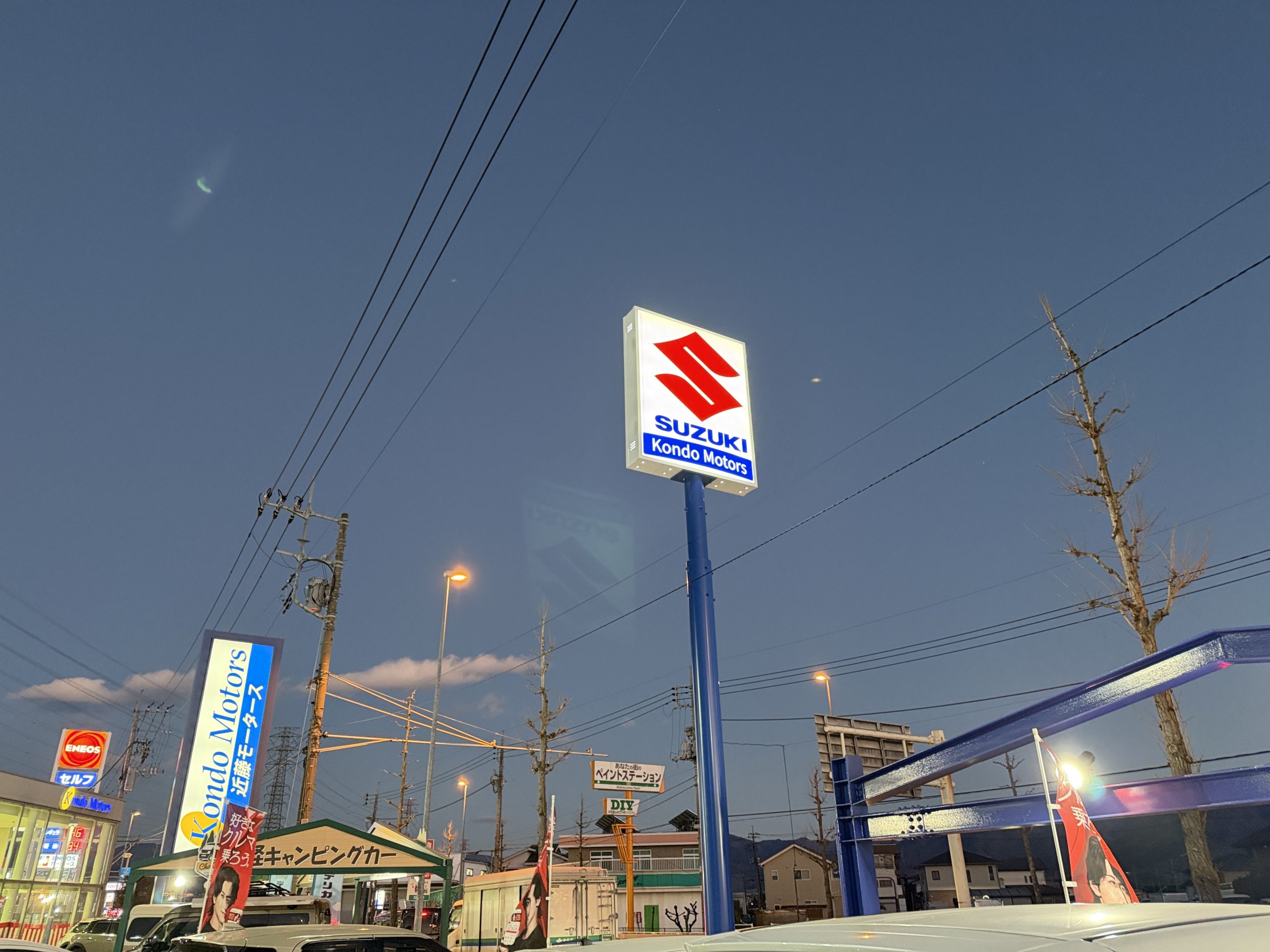 目印が増えました☆ こんばんは!営業ガールの三井です:-) 火曜日のブログで、「ある看板がたちます・・・」とお知らせをしましたが、昨日の定休日で新たに”スズキ”のマークの看板がたちました✨️ 昼間はもちろん、夕方から夜にかけては点灯をし、遠続きを読む